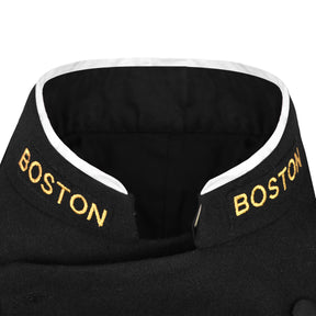 You can select the sleeve and chest badges from our store and we will install them on the coat. If you are looking for a different design coat or have a specific badge design you want us to install, email us an inquiry and we will do it. We can customize the coat for perfect fit at no extra cost.