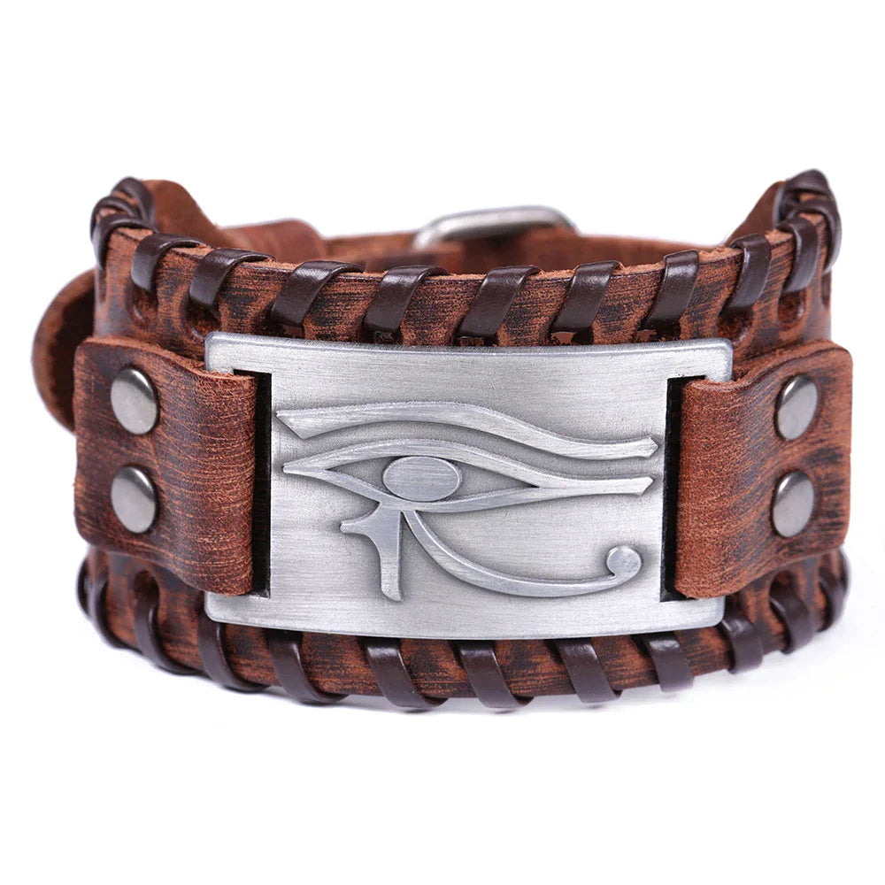 Ancient Egypt Bracelet - Genuine Brown Leather